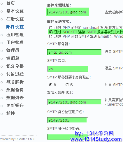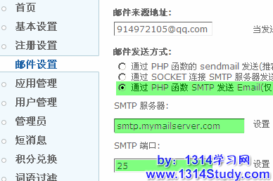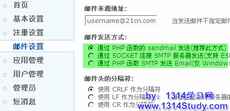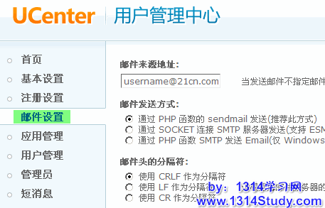 UCenter 预留了发送邮件的接口,方便在以后的版本增加群发邮件的功能,现在介绍一下邮件设置的具体配置方法。