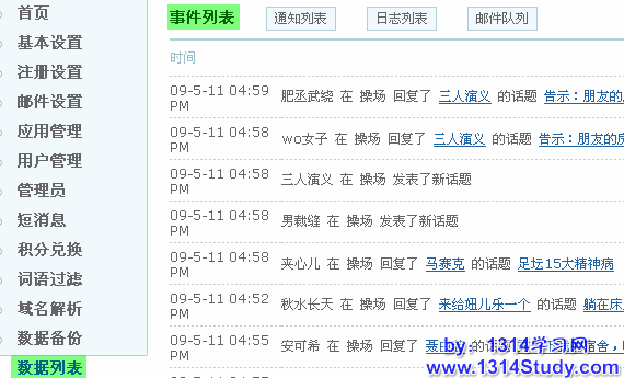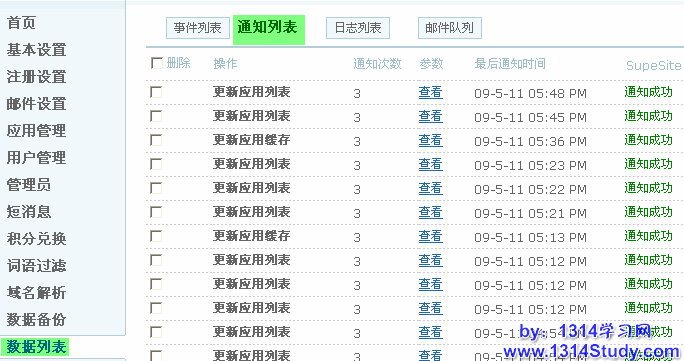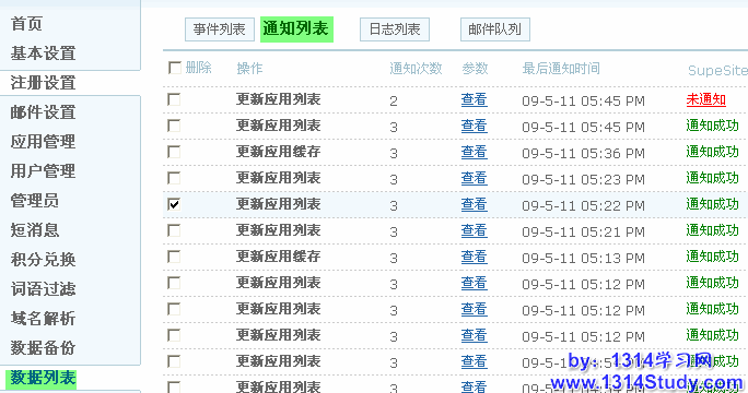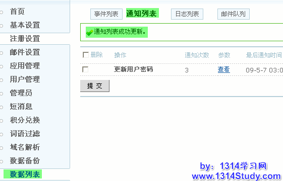 1、邮件列表主要展示 UCenter 相关应用的邮件发送,这个必须设置应用的邮件机制。