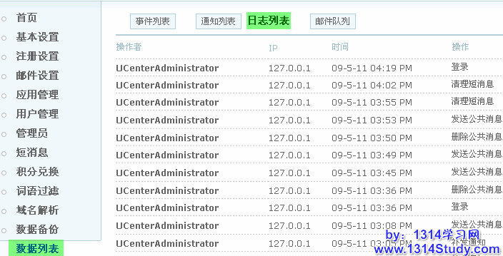 UCenter 数据列表机制主要包括各个应用的 feed , UCenter 的相关操作日志,UCenter 的通知机制,获取应用的邮件发送机制等功能。