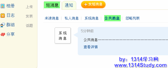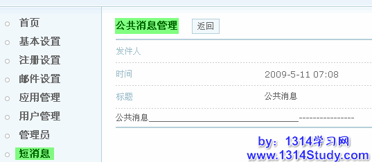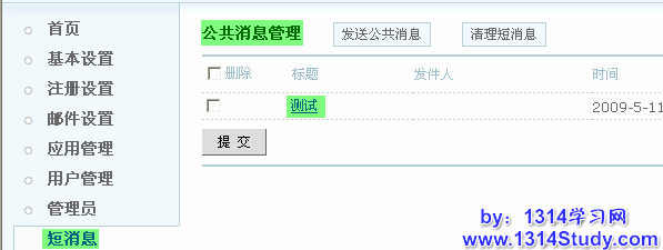 然后查看公共消息管理就会发现你刚刚发送的消息,UCenter 对应的应用产品用户也将收到此公共消息。如下图所示: