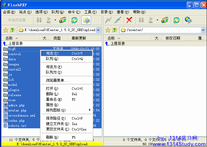 将其中 upload 目录下的所有文件使用 FTP 软件上传到空间,如下图所示: