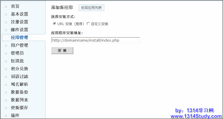 上图界面中选择“URL安装(推荐)”,填写好“应用的安装的URL”就可以开始安装各个应用了。