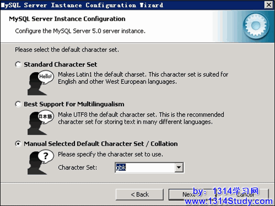 设定 MySQL 默认字符集:以用户站点语言为准。如下图所示: