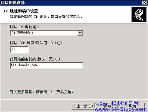 (3) 网站IP地址不用填写,端口如没有特殊要求则保持 80 即可,最后正确输入网站域名。如下图所示: