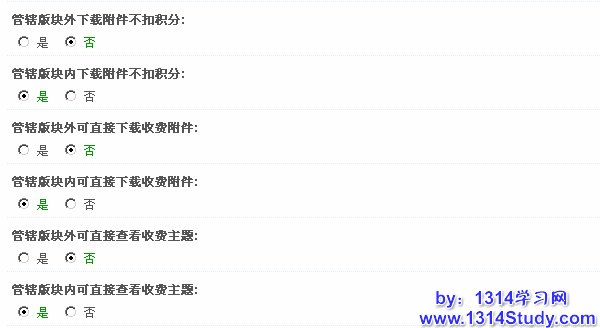8)管辖版块外可直接查看收费主题:版主在其管辖范围外的版块查看主题的时候是否可以直接查看收费主题。