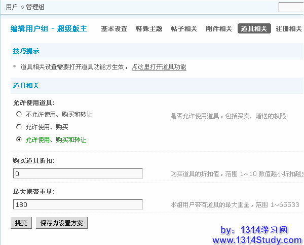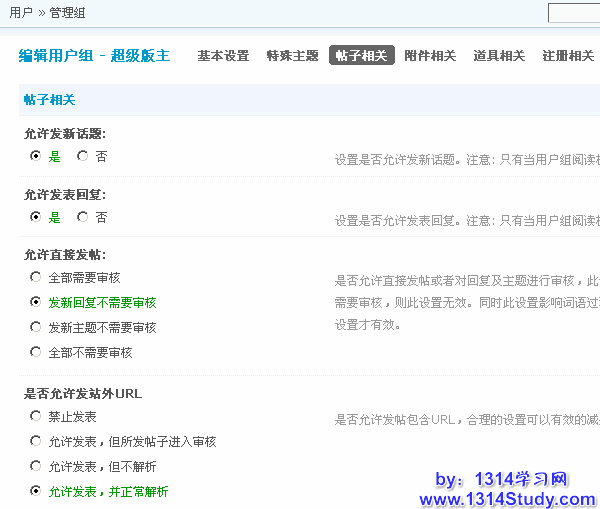 1)允许发新话题:设置是否允许发新话题。注意: 只有当用户组阅读权限高于 0 时,才能发新话题。