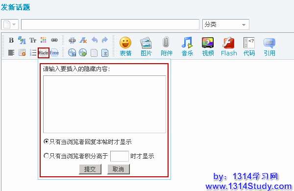 8)允许使用 [hide] 代码:设置是否允许帖子中使用 [hide] 隐藏标签。[hide] 标签可以在发布帖子的时候限制内容必须阅读权限高于多少才能够浏览或者是必须回复才可以浏览。