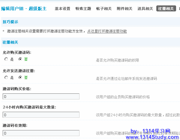 2)允许发送邀请注册:是否允许通过论坛邮件系统发送邀请码。