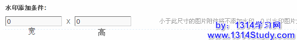 2)水印添加条件:小于此尺寸的图片附件将不添加水印,0 以水印图片大小为添加条件,如下图所示:
