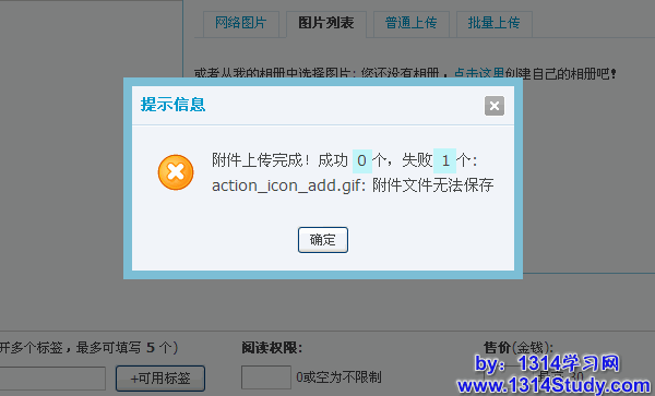 注意:如果这里填写错误或目录权限有误的话,在提交带附件的贴子时会出现如下提示: