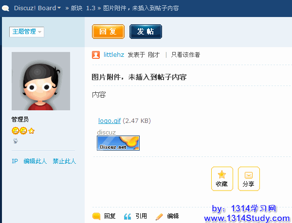 如果选择“否”指帖子中不直接显示图片,而需要点击附件链接才可以看到,如下图: