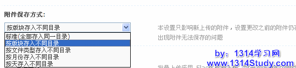 注意:假设开始设置的是“全部存放同一目录”,一段时间后,改为“按月份存入不同目录”,那么设置更改之前的附件仍存放在原来位置。如使用非标准的保存方式,请确认 mkdir() 函数可正常使用,否则将出现附件无法保存的问题。