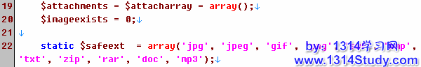 static $safeext = array('jpg', 'jpeg', 'gif', 'png', 'swf', 'bmp', 'txt', 'zip', 'rar', 'doc', 'mp3');