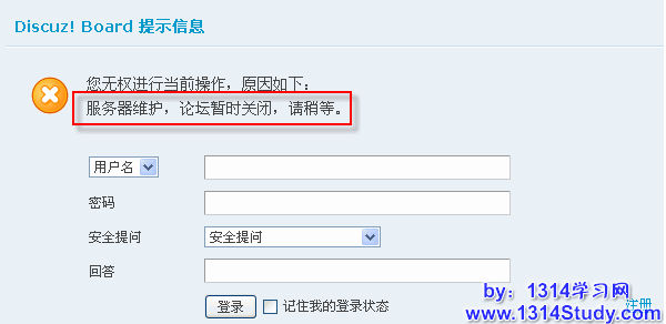 论坛关闭时出现的提示信息。效果如下图所示:
