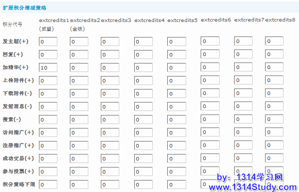 Discuz! 系统中积分分两部分:积分设置和积分策略向导,这里只讲解积分设置。