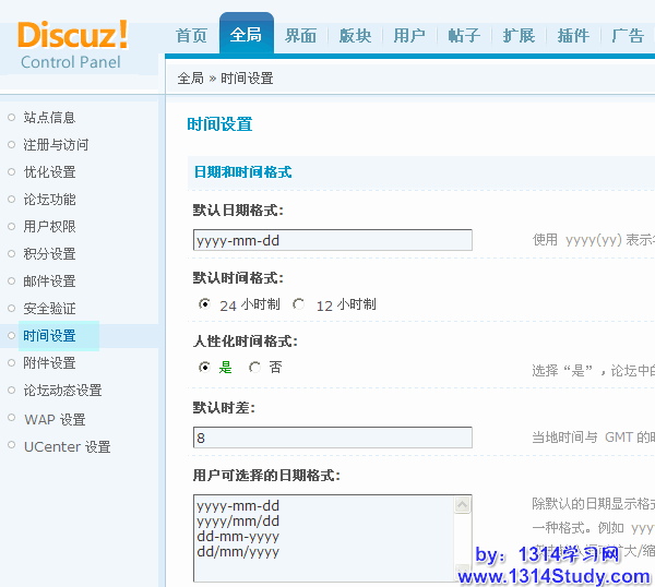本功能主要涉及后台时间设置与论坛的前台显示效果有关的系列设置,尤其是时差,本文介绍该功能的使用方法和注意事项。
