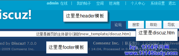 从图中可以看到,之前我们添加的那段文字已经正式生效了。这样就表示您已经成功的新建了一个首页(discuz.htm)模板文件。