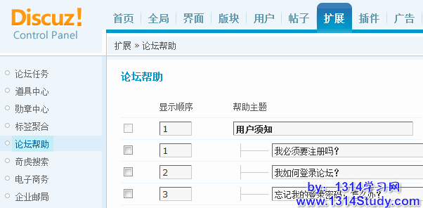 登录 Discuz! 7.1 => 系统设置 => 扩展 => 论坛帮助