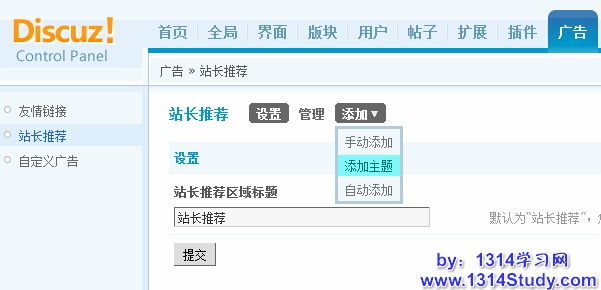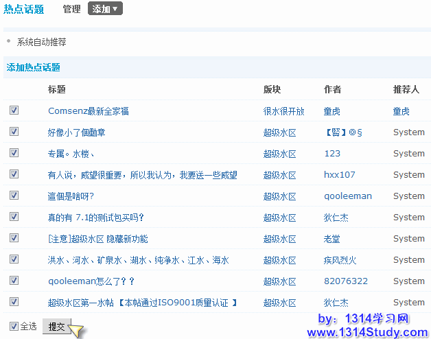 管理员可以在此选择哪些推荐主题设置为站长推荐,选中推荐主题前面的多选框,“提交”即可。