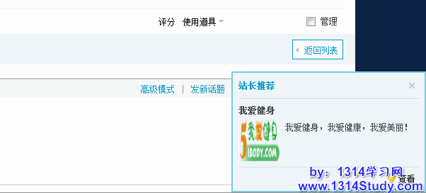 我们来看看站长推荐在前台的显示效果,打开随便一篇帖子内容页,在右下角我们可以看到一个浮动窗口,这个就是站长推荐的显示界面: