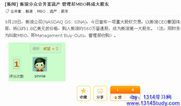 进入帖子页面,在帖子的右下角我们可以看到“评分”管理选项,如下图所示: