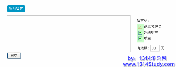 点击“添加留言”,可以给论坛管理员、超级版主、版主,如下图所示: