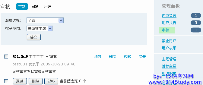 管理员或者版主可以在此审核主题、回复、新注册用户。