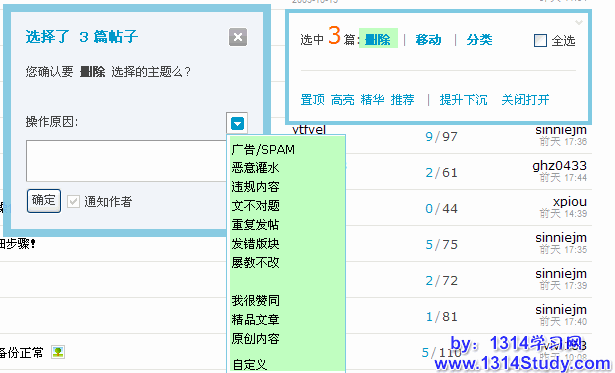 二、下面说明下管理员和版主日常管理常用操作: