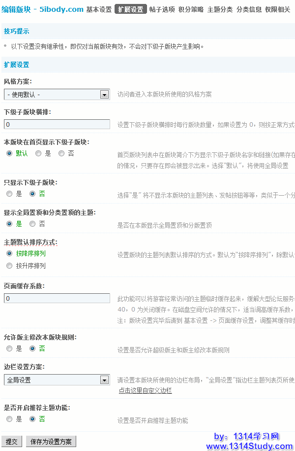注:版块设置完毕后请到 基本设置 => 页面缓存设置,调整其缓存时间。