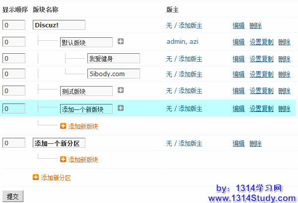 登录 Discuz! 7.1 => 系统设置 => 版块 => 版块管理: