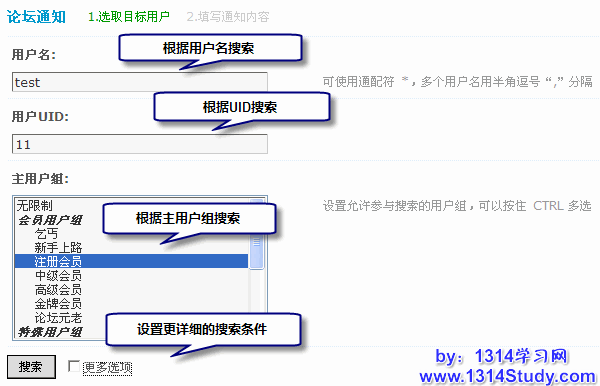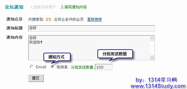 做为站长,有时需要通知部分用户一些信息。当需要通知的用户比较多时,逐个通知是比较麻烦的。Discuz! 的论坛通知功能即可解决这个问题,实现批量通知。您还可以选择发送论坛短消息或者发 Email 来通知客户。