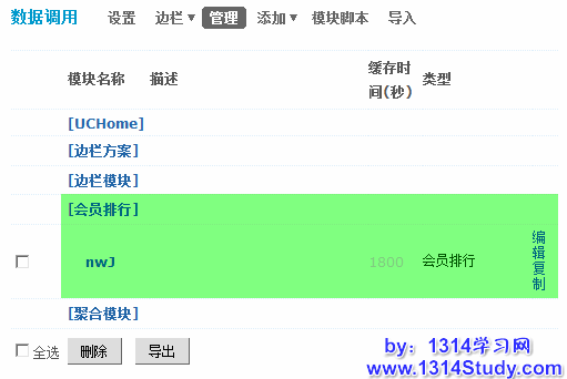 这里刚才添加的“会员排行_LGT”调用中的“会员排行”已经作为一个分类存在了,此时如果再添加一个“会员排行”的调用,则会把两个调用同时归为一类。