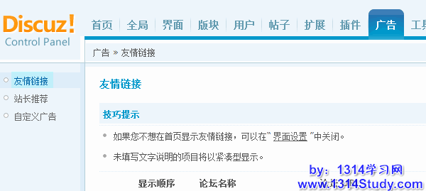 登录 Discuz! 7.1 => 系统设置 => 广告 => 友情链接: