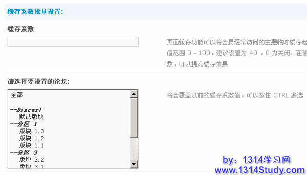 该功能可以批量设置各个版块的帖子缓存系数,在开启了帖子缓存之后请指定这个值。