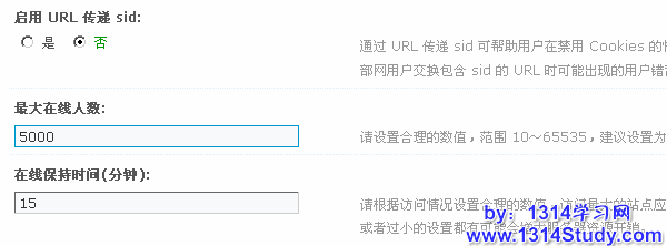 请根据访问情况设置合理的数值,访问量大的站点应当调小该数值,设置范围 5 - 60,过大或者过小的设置都有可能会增大服务器资源开销。用户的在线状态保存在 sessions 数据表内,调整这个值也就是调整了用户在线记录在该表内保存至自动销毁的时间。