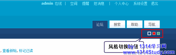 可以设置是否显示可用的论坛风格切换按钮,用户可以此按钮切换不同的论坛风格。