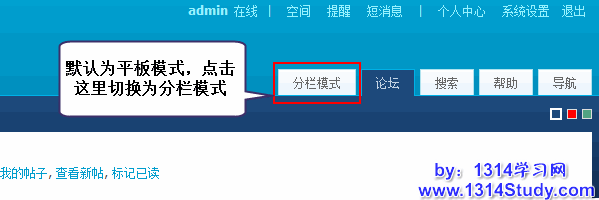开启此功能后,论坛的头部会出现切换的链接(平板模式/分栏模式) 。