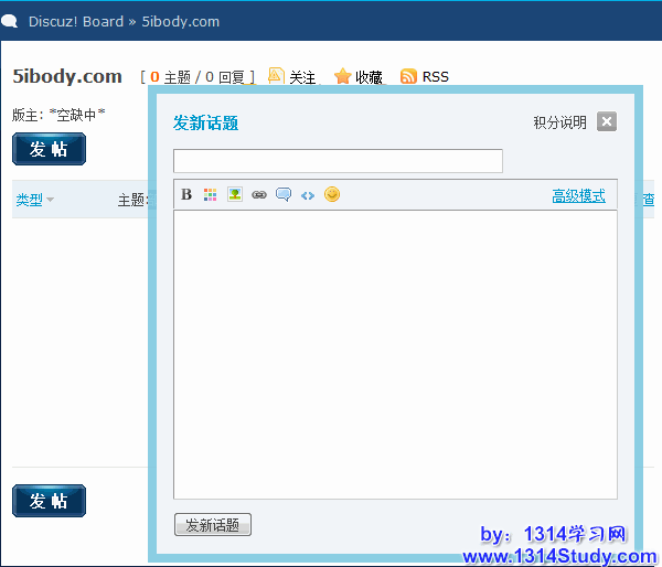我们以“登录”开启浮动窗口做演示看下效果,“登录”开启浮动窗口后,在论坛前台发帖时会在弹出层中输入帖子的内容,如下图所示: