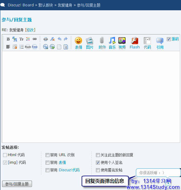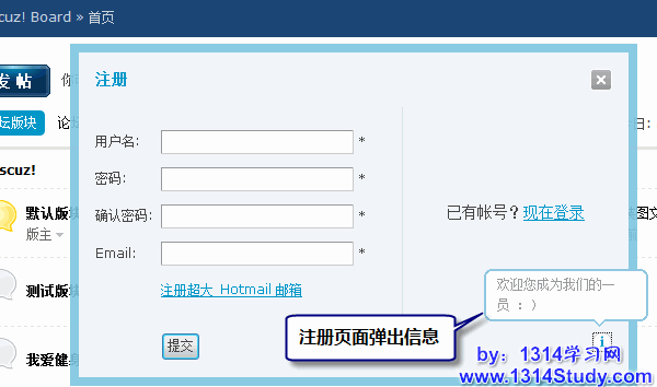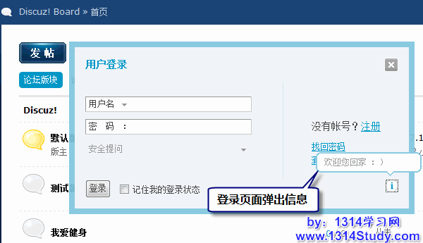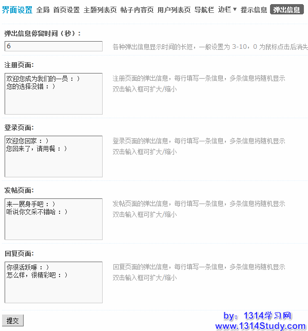 弹出信息可以在注册、登录、发帖或者回复页面随机出现,为论坛添加一些乐趣。