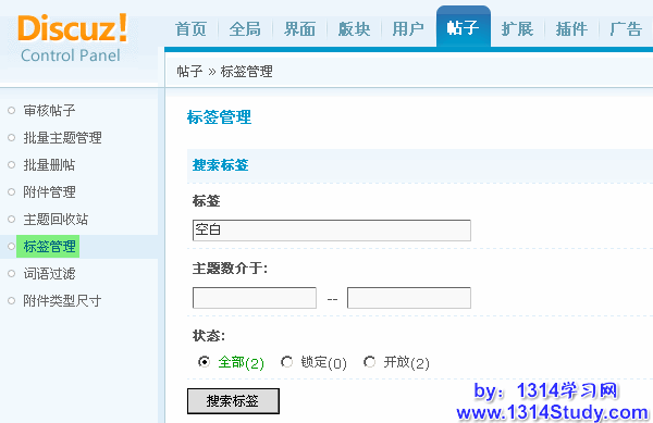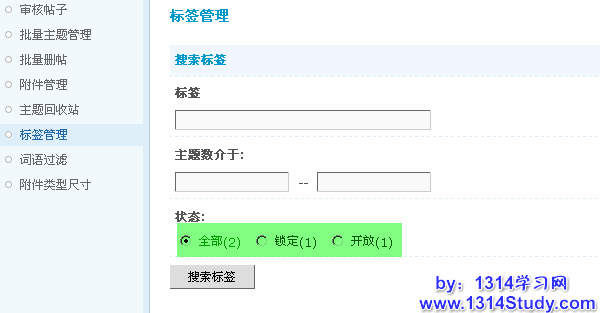 标签作为论坛主题横向关联的工具,极大地减轻了管理员的分类工作。对于这些标签的管理,管理员可以通过后台标签管理功能来实现。
