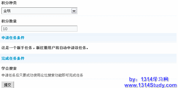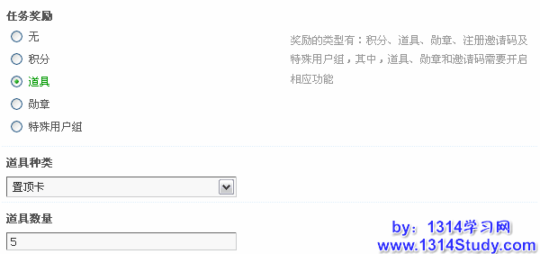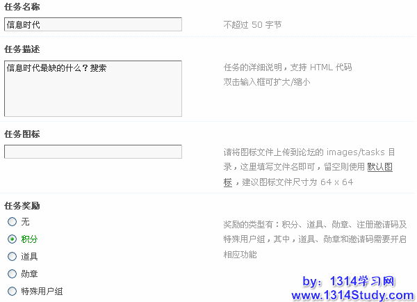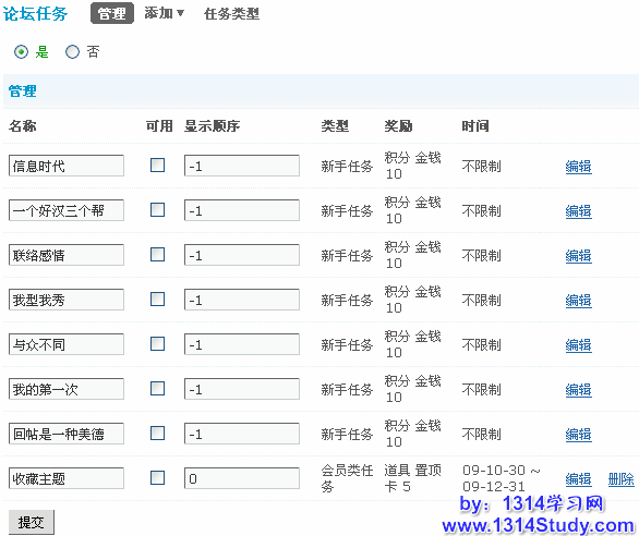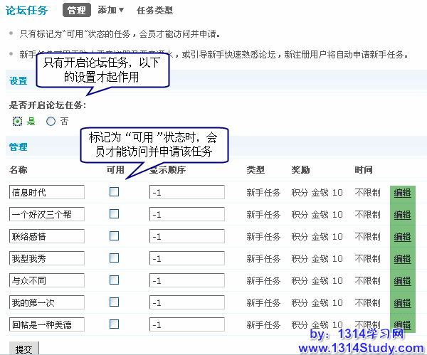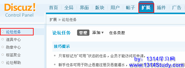 论坛后台 => 扩展 => 论坛任务 => 管理: