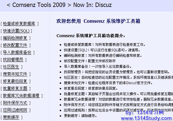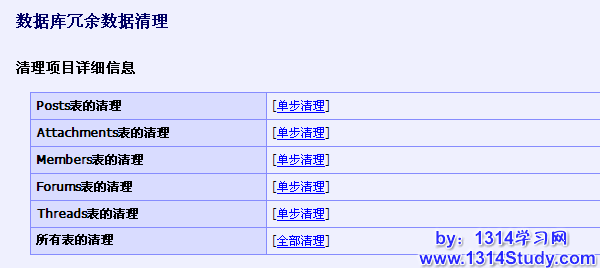 当论坛运行一定的时间后,由于日常的维护会导致一些冗余的数据存在数据库中,利用此功能可以清理掉冗余的数据,提高论坛的运行速度。注意:使用此功能前要备份数据库。