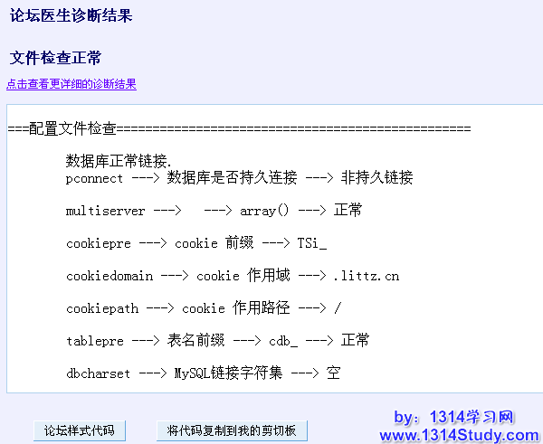 可以检测出与论坛运行有关的环境信息,如果论坛运行不正常,可以利用此功能查看下环境的配置情况