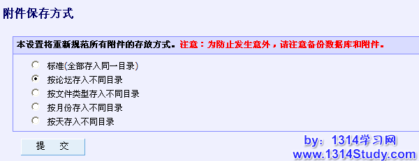 可以在论坛后台 => 全局 => 附件管理 => 附件保存方式中设置保存方式,此时不会影响之前的附件的保存方式,工具箱的此功能可以帮助站长调整论坛之前上传的附件的保存方式,当然如果没有特殊的需要不需要用此处调整。