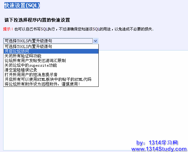 1)此功能适合高级用户,可以执行一些对数据库操作的 SQL 语句。