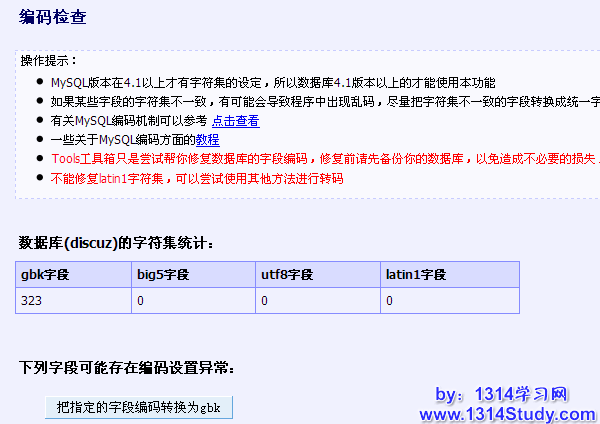 可以检测数据库字段的编码,如果有字段的编码与主要的编码不一致,可以在一定的情况下利用 tools 修正。