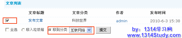 移到分类:可以把某篇文章的分类移动到另一个分类下,如下图所示: