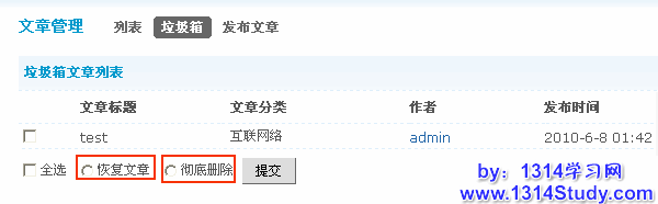 垃圾箱:这里的文章可以进行恢复,也可以彻底删除。