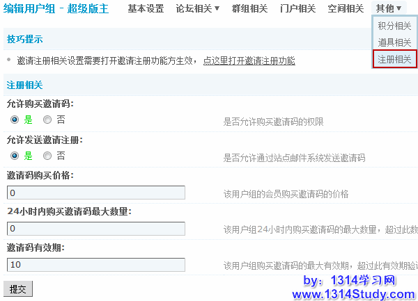 2)允许发送邀请注册:是否允许通过论坛邮件系统发送邀请码。