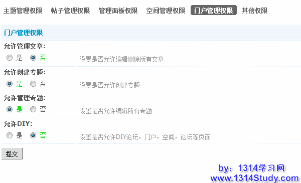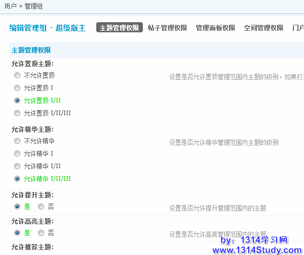 2)允许精华主题:设置是否允许精华管理范围内主题的级别。